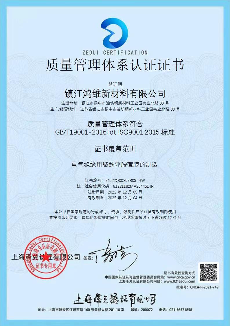 质量管理体系认证证书